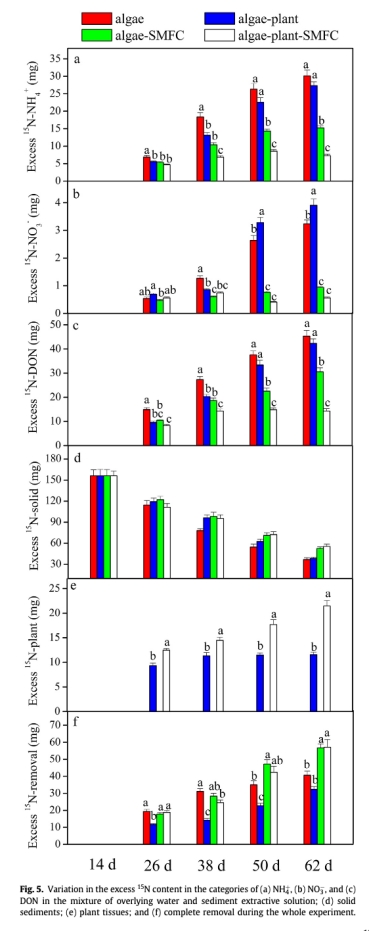 ? 數據:SMFC使藻源15N的沉積物殘留率提升10.2%(33.8% vs 23.6%),去除率提升10.3%(36.3% vs 26.0%)。