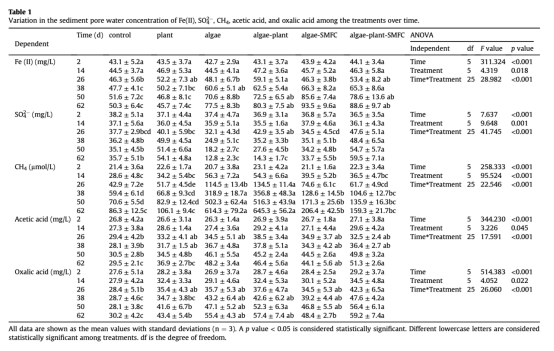 1. 數據:強烈分解期(50天),藻類+植物處理的界面氧濃度最低(約0.5 mg/L),而藻類+植物+SMFC組維持在1.2 mg/L以上。