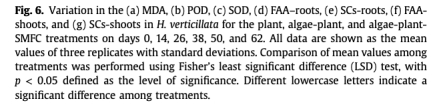 ? SMFC使藻類+植物+SMFC組的根系MDA降低至139.8 μg/g。