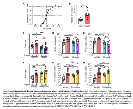 ? 數(shù)據(jù):瘧疾感染組盲腸/結(jié)腸沙門氏菌負(fù)荷增加10-100倍(圖1B-C);胃酸激動(dòng)劑處理恢復(fù)定植抗性(圖3D-E)。