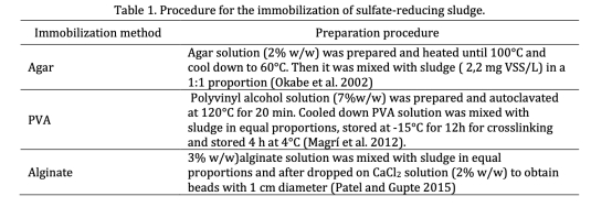 Study of immobilization methods for sulfate-reducing sludge characterization through H2S production evaluation