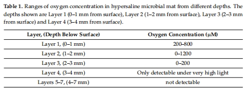 測量微生物墊0–4 mm層氧濃度,區分晝夜變化(正午 vs. 午夜)。