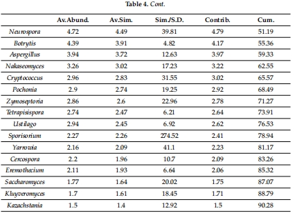 功能類群:腐生菌(如 Saccharomycetales)、病原菌(如 Fusarium)、反硝化菌(如 Aspergillus)(表4)。