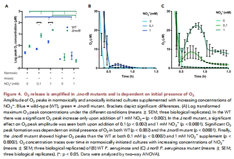 本研究通過(guò)微呼吸測(cè)量技術(shù)發(fā)現(xiàn)銅綠假單胞菌(Pseudomonas aeruginosa)在缺氧起始階段會(huì)釋放氧氣(O?),并證明該過(guò)程由一氧化氮(NO)驅(qū)動(dòng):