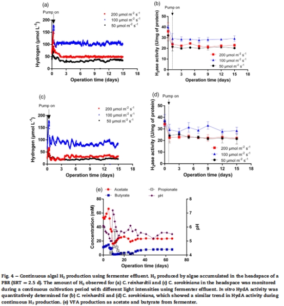 從富含醋酸鹽的廢水中連續(xù)生產(chǎn)光合生物氫:光照強(qiáng)度的影響