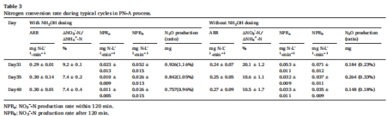 解決PN-A工藝惡化問題:針對因過度曝氣導致的NOB增殖和硝酸鹽積累,探索羥胺短期投加的恢復效果。