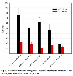 結(jié)果:平均去除率COD 63.1%±19.3%、TSS 82.4%±18.7%,出水COD<44 mg/L,TSS<58 mg/L。