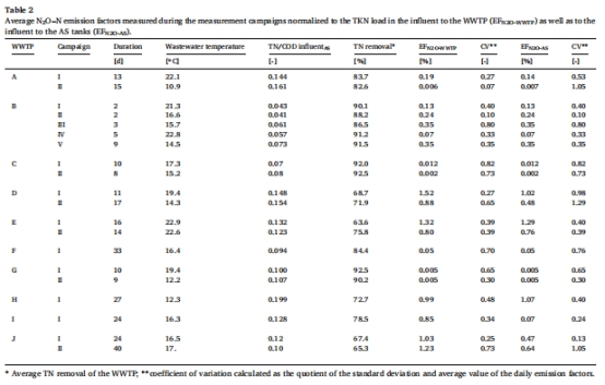 本研究通過對奧地利10座市政污水處理廠(WWTPs)進行22次現場監測(2012-2018年),量化了活性污泥系統中N?O排放規律。研究發現: