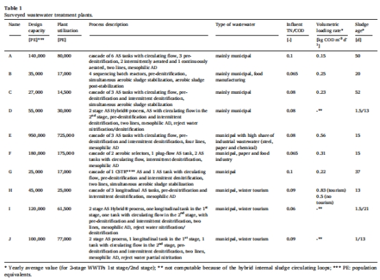 站點選擇:10座奧地利WWTPs,涵蓋單級/多級活性污泥、SBR、Hybrid®工藝,設計負荷1.7萬-95萬人口當量(表1)。