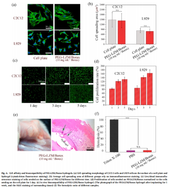 測量植入后凝膠pH(~6.5),解釋無炎癥反應原因(圖6e),支持體內安全性結論。
