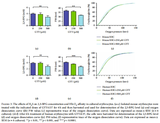 H?S直接作用于紅細(xì)胞:體外實(shí)驗(yàn)證實(shí)H?S供體GYY4137可降低2,3-BPG并增強(qiáng)Hb-O?親和力(圖3)。