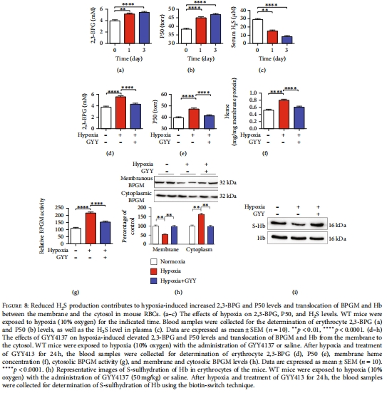 缺氧適應(yīng)性:缺氧降低循環(huán)H?S水平,增加2,3-BPG,而GYY4137可逆轉(zhuǎn)此效應(yīng)(圖8)。