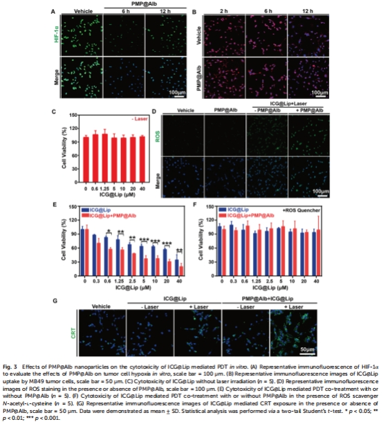 解釋PDT中ROS生成↑的機(jī)制(氧供給↑使ICG光動(dòng)力效率↑,圖3D)。