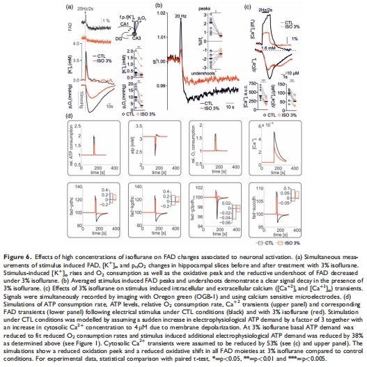 基于實驗數據模擬ATP消耗、CMRO?、FAD瞬變,區分異氟醚的直接/間接效應(圖5-6)。