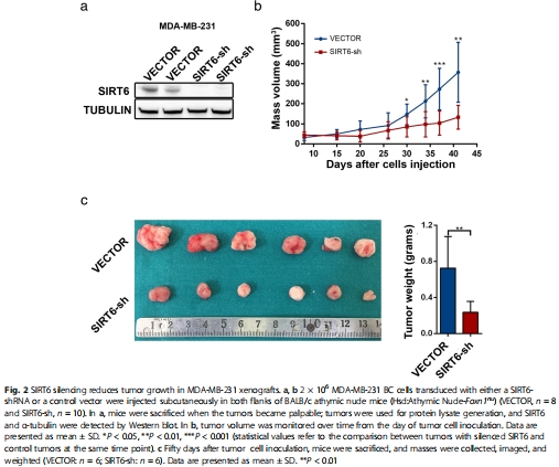 MDA-MB-231異種移植:SIRT6沉默抑制腫瘤生長(圖2b-c);