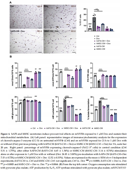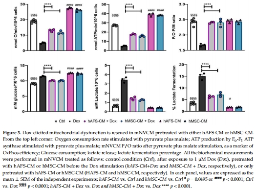 hAFS-CM與hMSC-CM均能有效保護心肌細胞和成纖維細胞,減輕Dox誘導的凋亡、線粒體功能障礙及代謝紊亂。