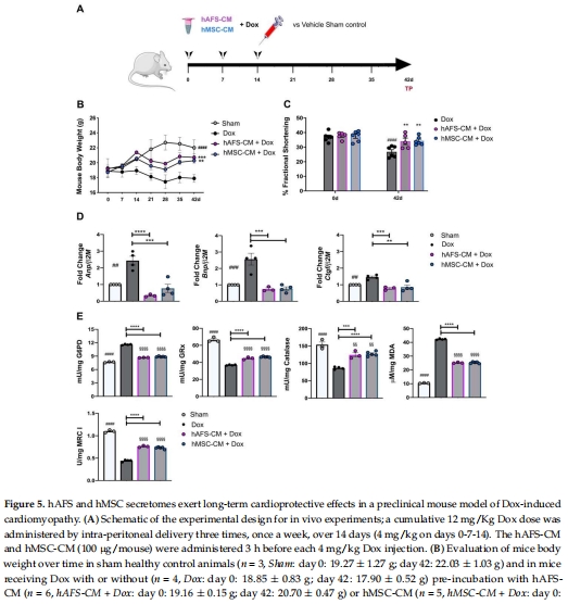 數(shù)據:Dox組凋亡率↑4.6倍(vs. Ctrl),hAFS-CM/hMSC-CM預處理分別降低凋亡率37.6%和39.3%。