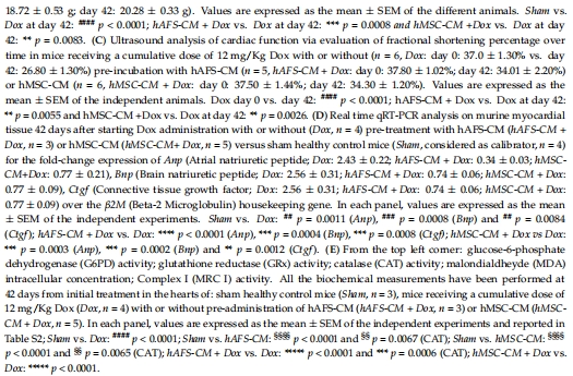 數(shù)據:Dox抑制抗氧化酶(GRx↓2倍,CAT↓2倍),hAFS-CM恢復其活性(p<0.0001)。