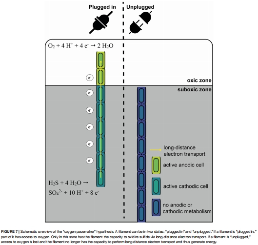 “氧氣起搏器”模型:提出新模型解釋同步分裂機(jī)制——電纜細(xì)菌僅在接觸氧氣時(shí)啟動(dòng)長(zhǎng)距離電子傳輸,從而觸發(fā)全絲同步生長(zhǎng)與分裂(圖7)。