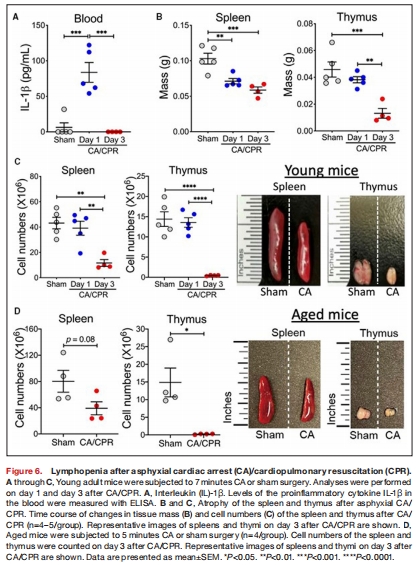 CA/CPR導致急性脾/胸腺萎縮和淋巴細胞減少。