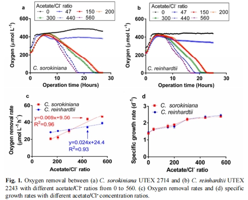 C. sorokinianaO?清除速率比C. reinhardtii高2.9倍(圖1c)。