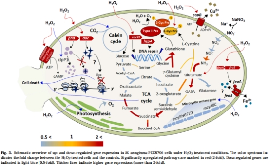 銅綠微囊藻的生存策略:依賴共生細菌(α-變形菌)的過氧化氫酶抵御H?O?脅迫(圖5-6)。