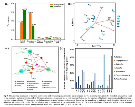 ? 關(guān)聯(lián)微生物活性:DO梯度與降解菌分布顯著相關(guān)(圖7c-d),為厭氧菌(如Halomonas)在深層降解微塑料提供環(huán)境解釋;