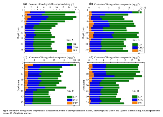 ? 數(shù)據(jù):植被區(qū)脂質(zhì)(9.97 mg·g?1)、碳水化合物(15.08 mg·g?1)含量為無植被區(qū)2倍。