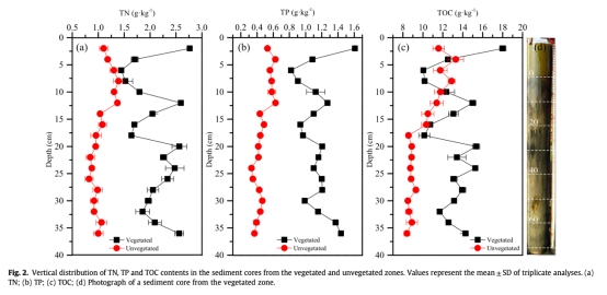 1. 分區(qū)采樣設(shè)計:在太湖竹山灣選取植被區(qū)(蘆葦覆蓋80%)和無植被區(qū)各2個點位,采集沉積物巖芯(0-30 cm)及上覆水樣。
