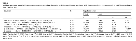 3. 統(tǒng)計建模:通過多元回歸分析建立可生物降解化合物與異味物質(zhì)的定量關(guān)系(表2)。