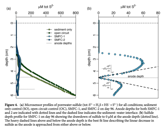 ? 研究意義:證實SMFCs使硫化物在陽極深度降至0 μM(圖4b);深度積分庫存顯示SMFCs組硫化物僅為對照組20%(圖7)
