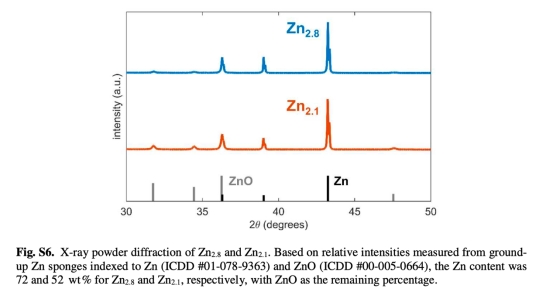 ? 數據:Zn2.8含72 wt% Zn(Zn2.1僅50 wt%),殘余為ZnO