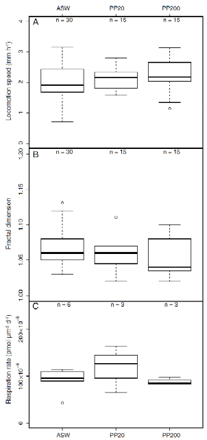 呼吸速率(圖2C):范圍41–114×10?? pmol/μm3/day(ASW)、66–164×10?? pmol/μm3/day(PP20)、84–98×10?? pmol/μm3/day(PP200)。