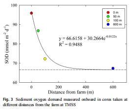 數據:TMSS養殖點SOD在400 m外恢復至背景值(67.3 mmol·m?2·d?1)。