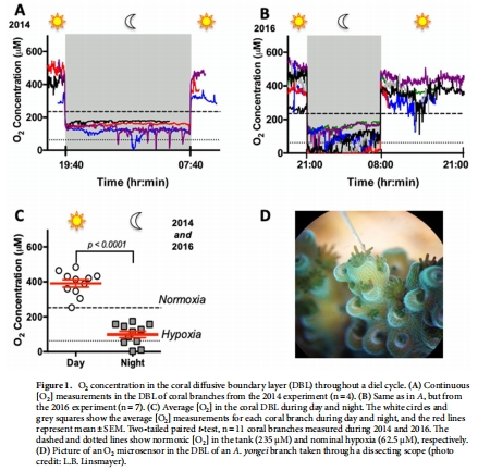揭示珊瑚DBL氧濃度的晝夜變化規(guī)律及其對代謝的脅迫效應(yīng)。