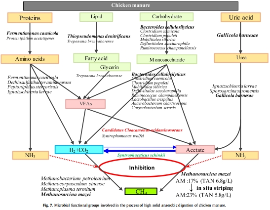 Improved high solid anaerobic digestion of chicken manure by moderate in situ ammonia stripping and its relation to metabolic pathway