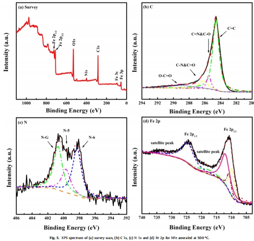 圖5:NFe的XPS譜圖(C/N/Fe元素)