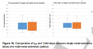 多金屬硒化物(η<sub>10</sub>均值108 mV)>單金屬硒化物(η<sub>10</sub>均值156 mV)(圖18);