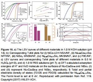 Ni?.??Co?.??Se?在堿性介質(zhì)中Tafel斜率低至39 mV dec?1(圖16b);