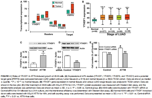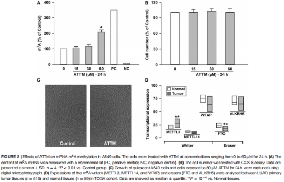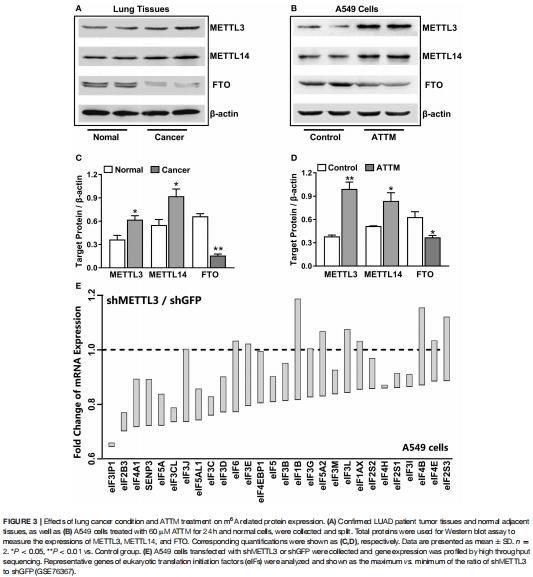 ATTM 處理:升高 m6A RNA 水平(圖 2A),上調(diào) METTL3/14/YTHDF1,抑制 FTO(圖 3B-D, 4C)。
