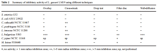 數據:LM19對L. bulgaricus抑制最強(+++),對C. perfringens和L. innocua有中度抑制(++)。