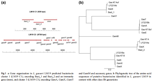 通過加氏乳桿菌 LM19(一種從母乳中分離的菌株)生產多種細菌素,包括新型細菌素氣體絲膠蛋白