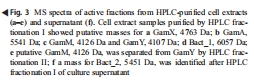 從細胞提取物和上清液中純化肽(圖2, 3),化學合成6種肽(GamA、GamX、Bact_1、Bact_2、GamM、GamY)。