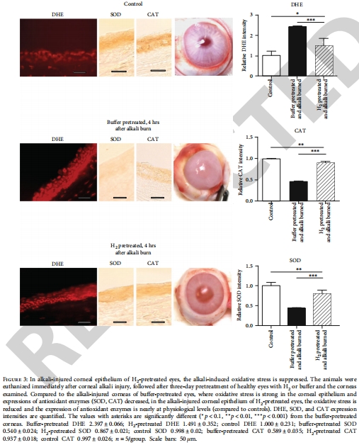分子氫(H?)預(yù)處理 健康兔角膜可誘導(dǎo) 輕度氧化應(yīng)激,激活抗氧化酶(SOD、CAT)。