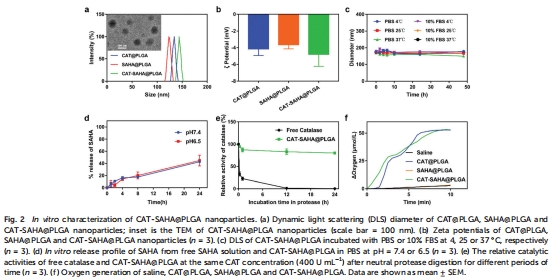 意義:PLGA外殼有效保護(hù)CAT活性,延長SAHA循環(huán)時(shí)間,解決裸酶易降解和HDAC抑制劑藥代動(dòng)力學(xué)差的問題。
