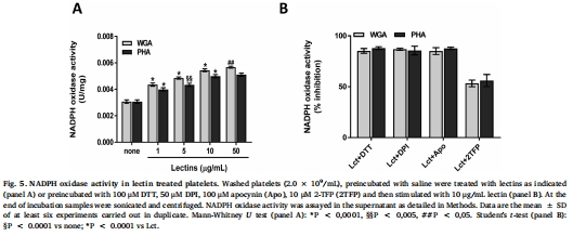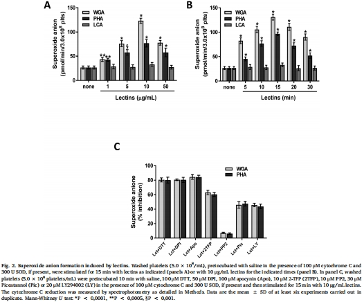 本研究首次揭示 小麥胚芽凝集素(WGA) 和 菜豆凝集素(PHA) 通過雙重機制誘導血小板氧化應激: