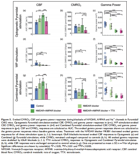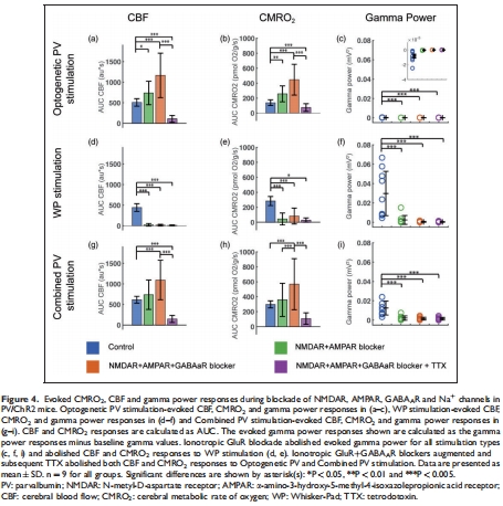 iGluR/GABAAR阻斷后CMRO?反應(yīng)仍存在,TTX阻斷后消失(圖4a-b),證明其依賴電壓門(mén)控鈉通道。