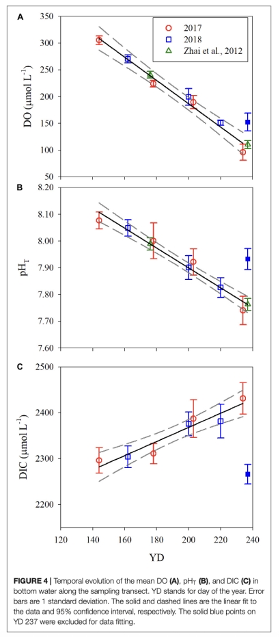 ? 數據:DIC以1.54±0.22 μmol L?1 d?1速率上升。