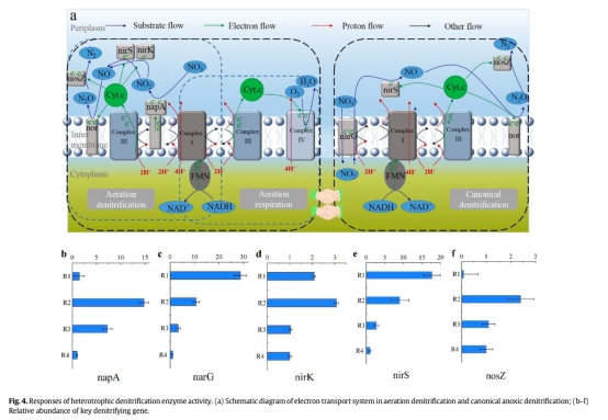 ? 意義:揭示好氧反硝化過程N?O排放量低(nosZ基因高表達抑制N?O積累,圖4),為低碳脫氮工藝提供依據。