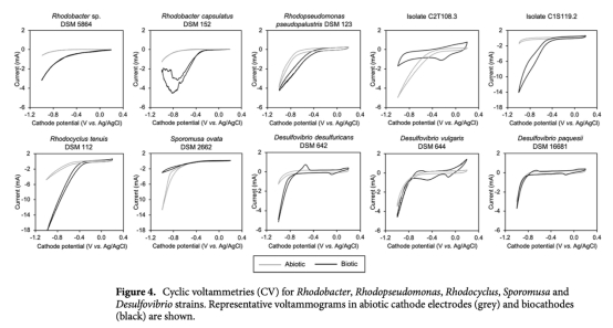 5 循環(huán)伏安(CV)曲線:數(shù)據(jù)來自圖4。意義:檢測菌株的電化學(xué)活性,識別氧化還原峰,揭示電子轉(zhuǎn)移機(jī)制。